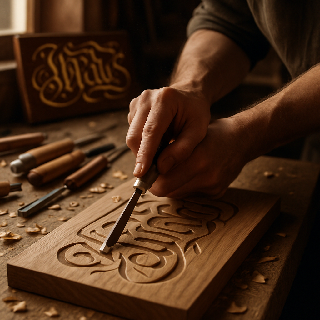 - Reliefschnitzerei: Flaches oder halbtiefes Relief, perfekt für kalligrafische Tafeln.